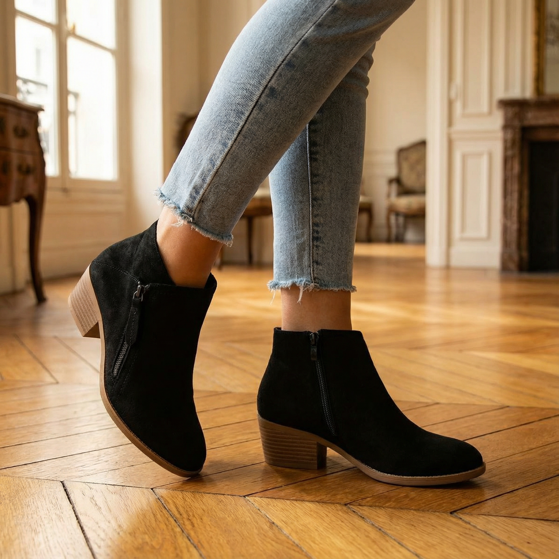 Women Ankle Boots – Comfortable Side Zip Low Heel Stylish Footwear For Everyday Wear