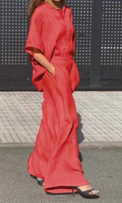 Casual Linen Shirt And Trousers Two-Piece Set